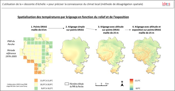 En tant que chercheur, Olivier accorde de l’importance sur la traduction concrète et utile des travaux au bénéfice de la société. Dans cette optique, depuis quelques années, il oriente ses contributions pour faciliter le passage de la connaissance scientifique à l’action territoriale. Pour ce faire, la « descente d’échelle » est une procédure de spatialisation permettant d’offrir une information géographique avec un grain suffisamment fin pour sensibiliser le public et les acteurs locaux au changement climatique, puis dynamiser et faciliter la mise en place de stratégies adaptées pour la préservation et le développement durable des territoires.