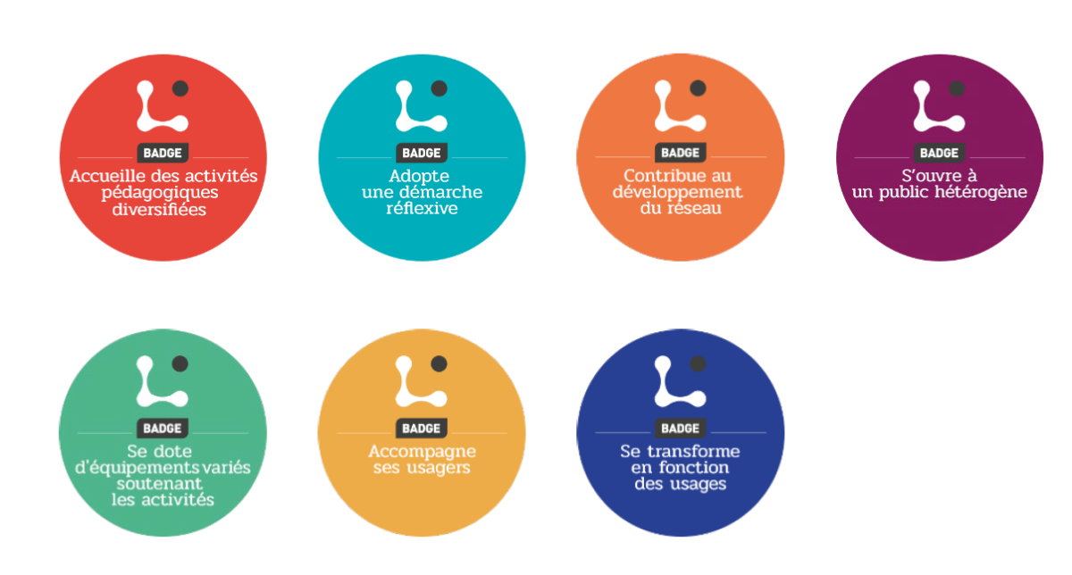 La labellisation LearningLab Network repose sur une démarche exigeante, fondée sur l’analyse des usages réels des espaces d’apprentissage, de l’accompagnement des usagers et de la démarche réflexive de l’équipe en charge de l’animation du Learning lab. Pour obtenir la labellisation, il est nécessaire de couvrir sept des huit badges proposés par le réseau, le dernier badge est en bonus (« Contribue à la recherche scientifique »). Ainsi, le Learning lab du Cemu a obtenu les badges suivants :