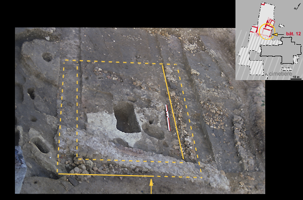 La stratification indique qu’il n’y a pas de hiatus entre la destruction du bâtiment 12 et la construction du bâtiment 11 (presbytère) qui lui succède.