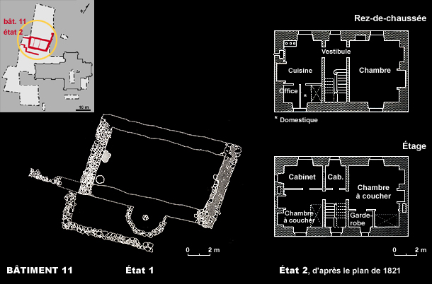 Les dimensions et les caractéristiques du bâtiment 11 sur le plan de 1821 sont celles de l’État 2 et non celles de l’État 3.