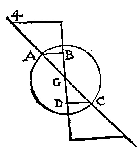 est G, et tiré les lignes 4G, qui le couppent aux poincts A et C, ie tire les Perpendiculaires AT I, 240