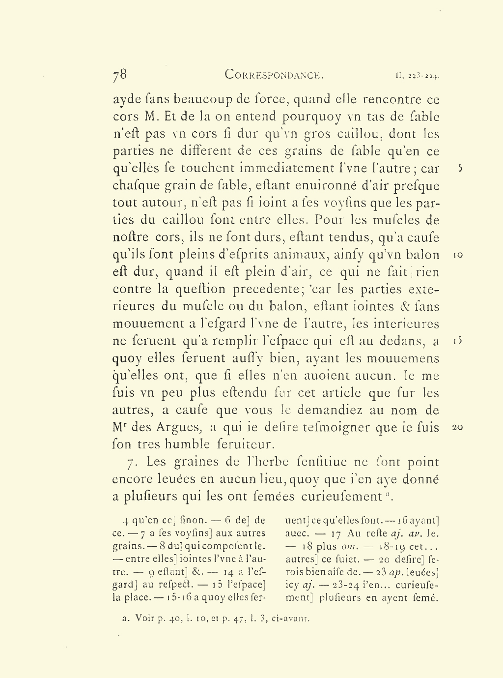 de ces plis, dont ie ne croy pas que le nombre soit gueres grand. Ie n’explique pas sans Ame le sentiment de la douleur, etc. car ce sentiment est en l’Ame ou en l’Entendement mesme, mais bien tous les mouvemens exterieurs qui accompagnent en nous ce sentiment, lesquels seuls se trouvent aux Bestes. Ie pensois aller voir aujourd’hui M. de F. pour luy demander des nouvelles de l’Histoire que vous me mandez de son pere, et des trois prodiges qu’on luy a écrits, comme venans de ce païs, où ie n’en ay point oüy parler qu’à luy seul, qui les raconta il y a quelque temps ; à sçavoir qu’à Wesel une dent estoit cruë fort longue à un Pendu, non pas en une nuit, mais en peu de temps ; ce qui ne lairra pas sans doute, d’estre faux, aussi bien que les deux autres : car nous avons icy des gazettes, qui n’auraient pas oublié de telles choses. Ie ne sçay que dire de la Declinaison de l’aiguille, est quæstio facti. AT III, 86