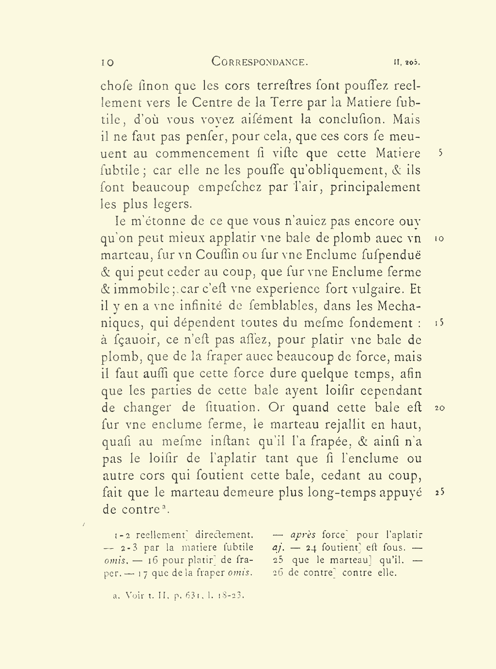 Lors que ie vous ay mandé, que s’il n’y avoit que l’Air qui empeschast la Pierre de descendre, elle devroit aller plus vîte, ou aussi viste au commencement, qu’à la fin, i’ay mis de Clerselier II, 206