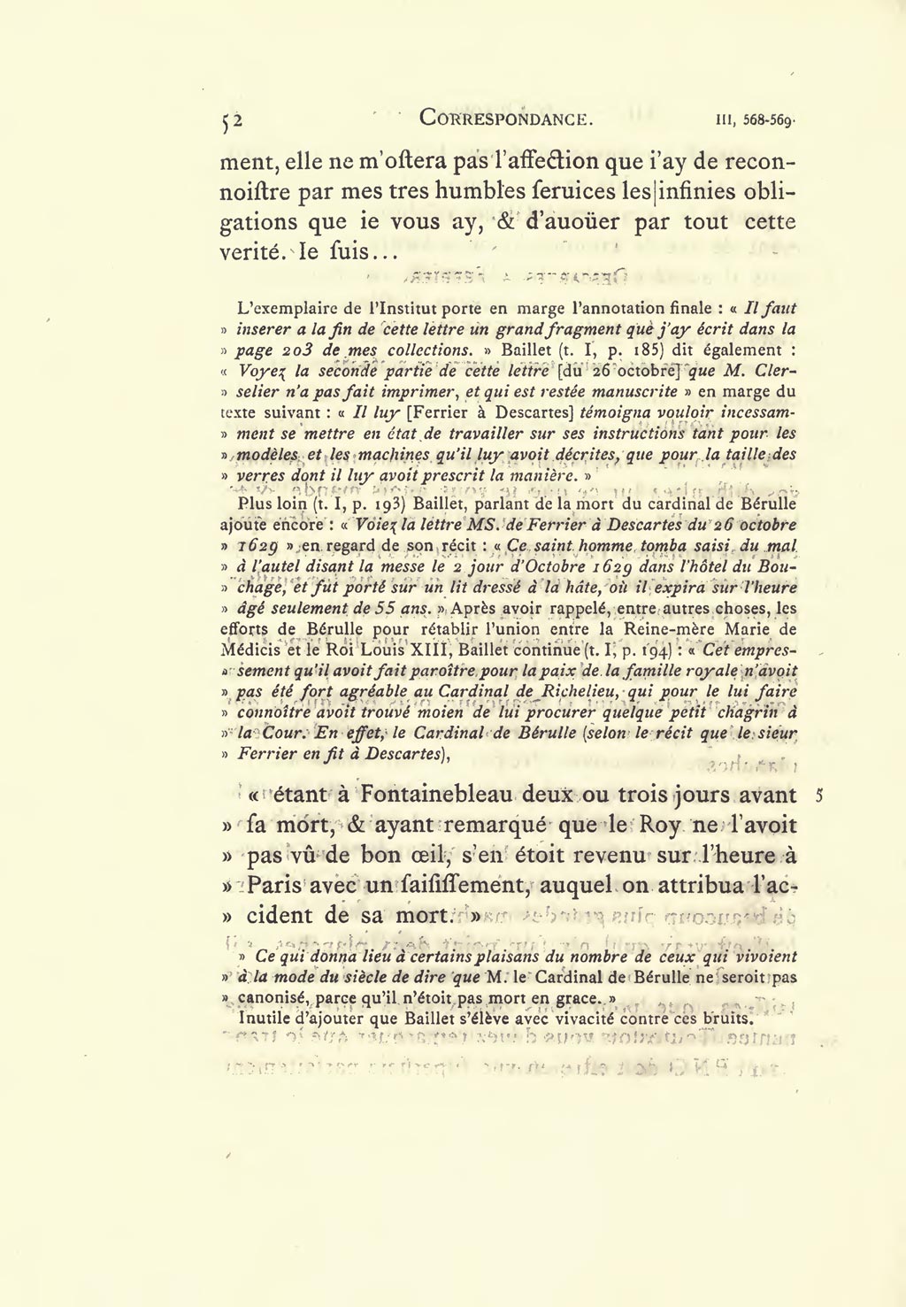 elle ne m’ostera pas l’affection que i’ay de reconnoistre par mes tres-humbles services les Clerselier III, 569