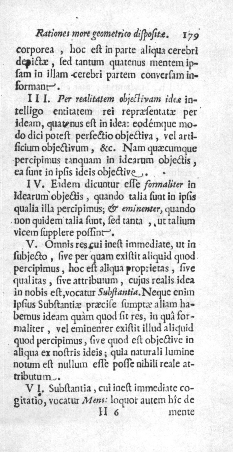 VI. Substantia, cui inest immediate cogitatio, vocatur Mens : loquor autem hic de Elzevier, p. 180