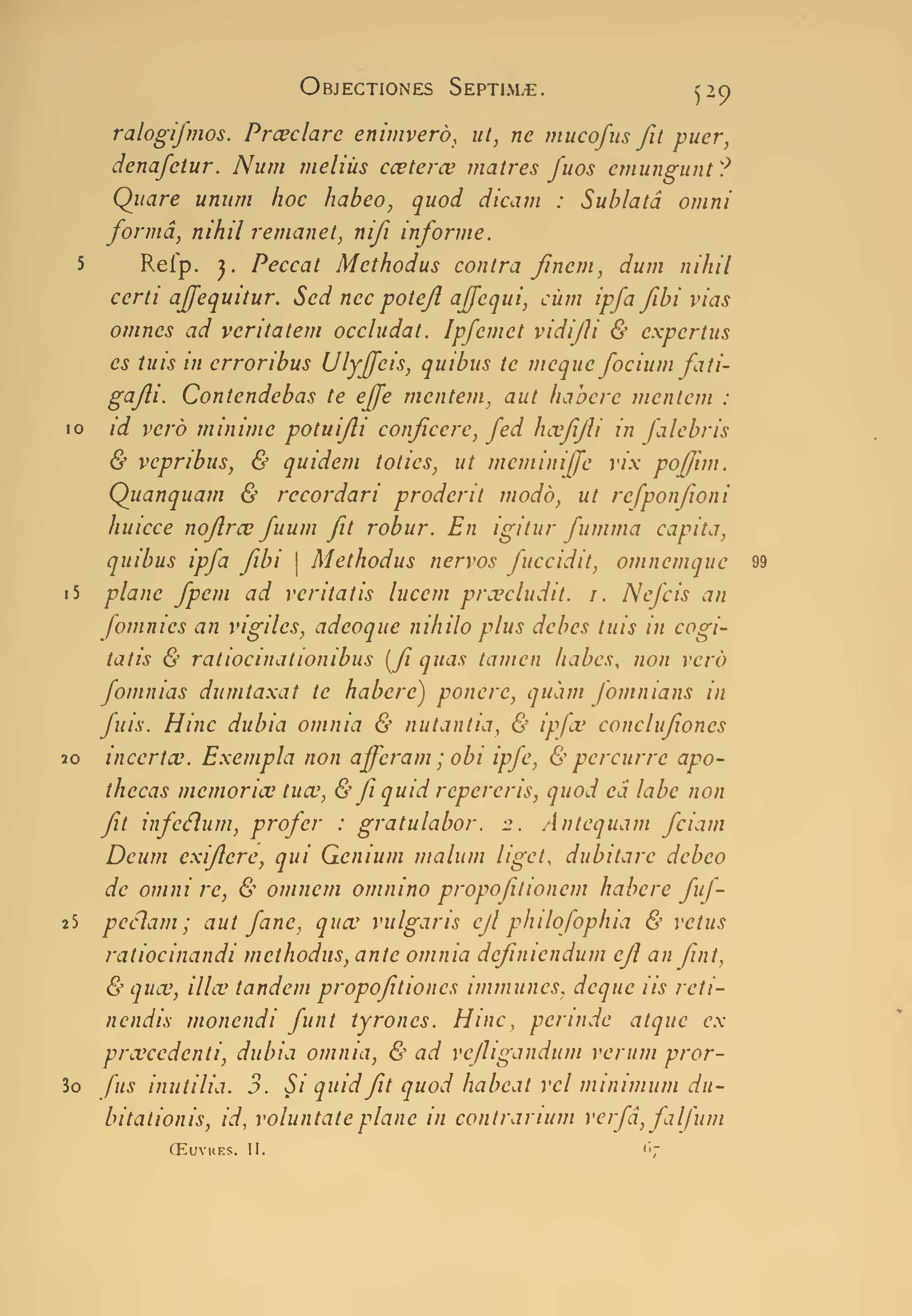 fuisse à me propositas, eo fine ut ipsas persuaderem, sed contra ut refutarem ; eodem plane modo, quo Medecinae scriptores morbos describunt, quorum curandorum Methodum volunt docere. Quis tam audax et tam impudens in calumniando unquam fuit, ut accusaret Hippocratem aut Galenum, quod causas ex quibus morbi nasci solent exponant, atque inde concluderet, ipsos nihil aliud docere Elzevier, p. 159