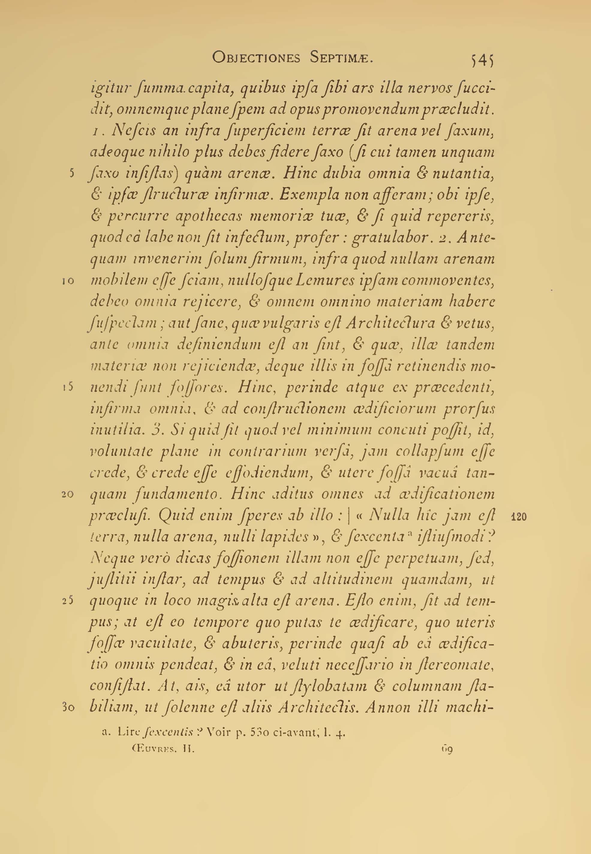 veterem et vulgarem Philosophiam optime consentire multorum annorum experientia jam docuit, de nova autem incertum est. Ideoque ne forte, imperitam multitudinem novitatis avidam ad se alliciendo, paulatim crescat et vires sumat, Scholarumque sive Academiarum pacem et quietem perturbet, vel etiam in Ecclesia novas haereses adducat, mature prohibendam atque extinguendam esse quidam contendunt. Ego vero contra respondeo, me quidem mihi nihil arrogare, nec profiteri me plus videre quàm caeteros ; sed hoc forte mihi profuisse, quod, cum proprio ingenio non multum fidam, planas tantum et faciles vias sim sequutus. Nam, si quis per ipsas magis promoveat quàm alii, multo majori ingenio praediti, per salebrosas et impenetrabiles illas quas sequuntur, non est mirandum. Elzevier, p. 169
