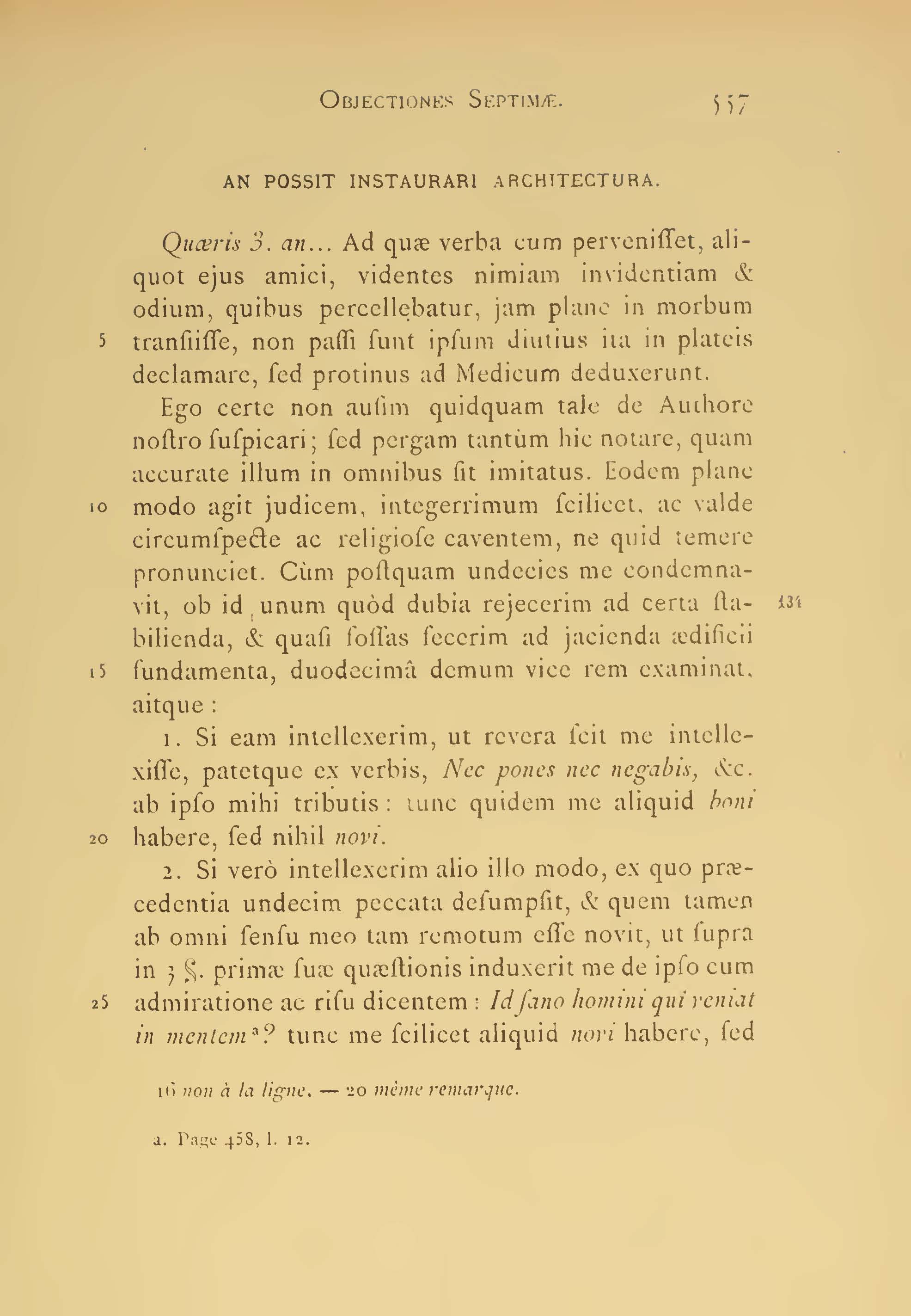 multis legeretur : nam, si tantum Sociis suis, in vestro Parisiensi Collegio, id quod sperabat persuasisset, hinc facile ad omnes alios vestrae Societatis, toto orbe sparsos, eadem opinio transiisset ; atque ab his etiam ad alios homines fere omnes, qui Societatis vestrae authoritati credidissent. Nec sane mirarer, si hoc contigisset : nam, cum vestri sint semper suis quisque studiis quammaxime occupati, fieri non potest ut singuli examinent omnes novos libros, qui quotidie magno numero prodeunt in lucem, sed crediderim expectari judicium ejus, qui primus ex Societate AT VII, 573
