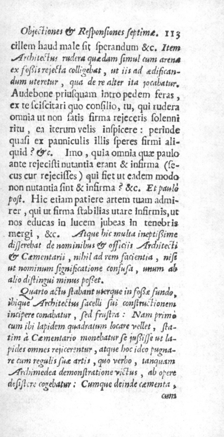 fructum non invidebo ; quin etiam responsurum me esse non promitto, nisi ubi tales rationes invenero, ut eas passim à lectoribus solvi posse non putem. Quantum enim ad cavillationes aut convitia, vocesque alias quascunque à proposito alienas, ipsas pro me potius quam contra me facere arbitrabor, hoc argumento, quod non existimem quemquam iis in tali causa esse usurum, nisi qui plura cupiet persuadere, quam rationibus probare possit ; quique Elzevier, p. 208