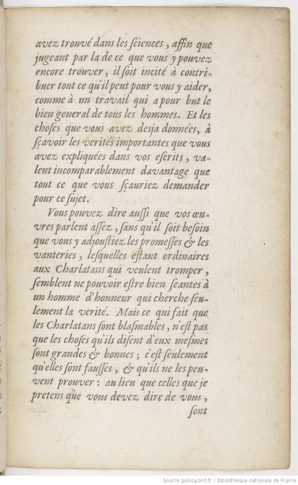 Image haute résolution sur Gallica chassiez cette trop grande modestie, qui vous a empesché jusques icy, de dire de vous et des autres tout ce que vous estes obligé de dire. Ie ne veux point pour cela vous commettre avec les doctes de ce siecle : la pluspart de AT XI, 311