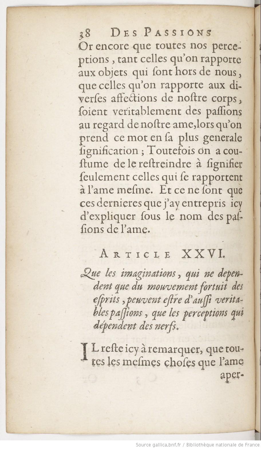 Image haute résolution sur Gallica la volonté peut le plus aysément vaincre les passions, et arrester les mouvemens du corps qui les accompagnent, ont sans doute AT XI, 367