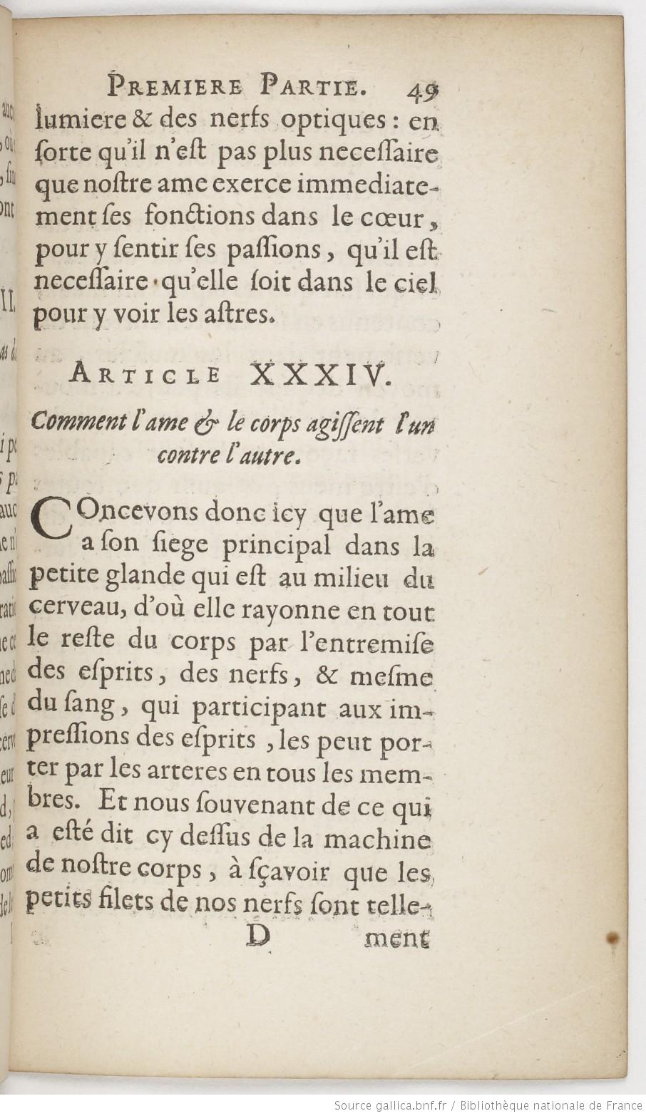 Image haute résolution sur Gallica marcher, ou mouvoir son corps en quelque autre façon, cette volonté fait que la glande pousse les esprits vers les muscles qui servent à cet effect.