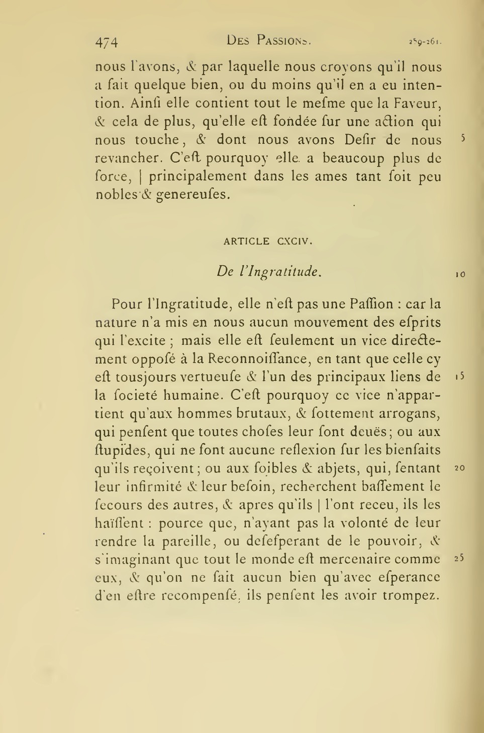 Ainsi ces deux Passions, ne sont que des espEces d’Admiration. Car lors que nous n’admirons point la grandeur ny la petitesse d’un objet, nous n’en faisons ny plus ny moins d’estat que la raison nous dicte que nous en devons faire ; de façon que nous l’estimons ou le mesprisons alors sans passion. Et bien que souvent l’Estime soit excitée en nous par l’Amour, et le Mespris par la Haine, cela n’est pas universel, et ne vient que de ce qu’on est plus ou moins enclin à considerer la grandeur ou la petitesse d’un objet, à raison de ce qu’on a plus ou moins d’affection pour luy.