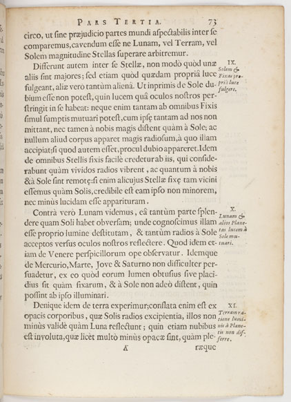 Image haute résolution sur Gallica ut sine praejudicio partes mundi aspectabilis inter se comparemus, cavendum esse ne Lunam, vel Terram, vel Solem magnitudine Stellas superare arbitremur.