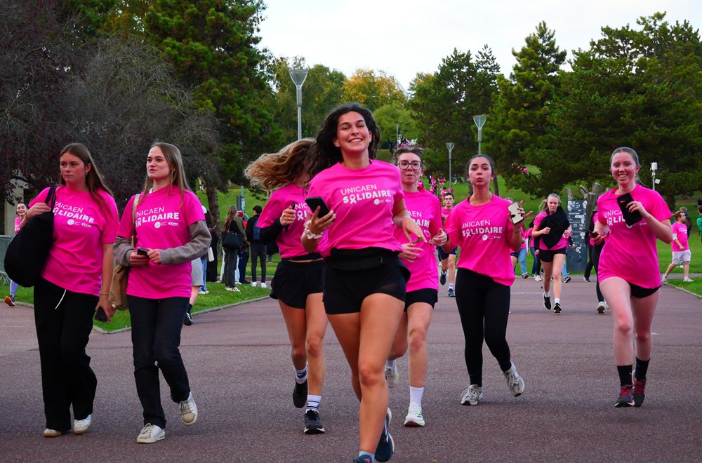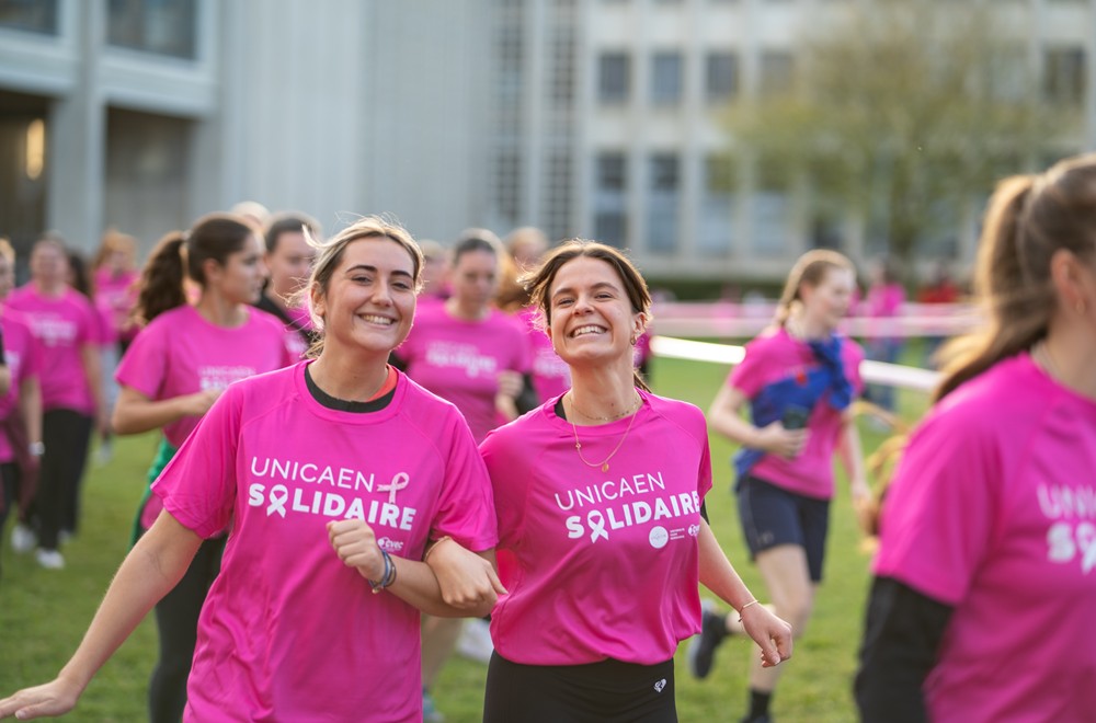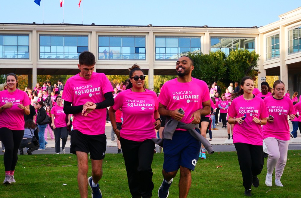 Chaque année, l’université de Caen Normandie s’engage dans la sensibilisation et la lutte contre les cancers gynécologiques autour d’une occasion marquante : la marche/course UNICAEN Solidaire. Cet événement sportif et festif est ouvert aux étudiants, étudiantes et personnels, moyennant une participation minimum reversée au profit de la prévention et du dépistage des cancers féminins. Chaque participant et participante peut également recevoir son t-shirt aux couleurs d’Octobre rose, permettant d’afficher son soutien à la campagne.
