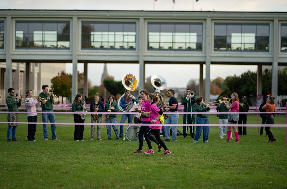 Après un échauffement en musique menée par une enseignante du SUAPS, une nuée rose s’est élancée sur les pentes du campus, encouragée par la fanfare café Calva caennexion. Le parcours, non chronométré, traverse les espaces verts du campus 1 et ses installations sportives sur une boucle à réaliser deux fois, pour un total de 5 kilomètres. À l’arrivée, sous la galerie vitrée, des stands ont accueilli les volontaires autour de la sensibilisation aux cancers gynécologiques, répondant aux questions et partagent des ressources. Ont ainsi répondu présent le Service de santé étudiante, la Médecine préventive, le CHU de Caen Normandie, la Ligue contre le cancer, le Centre Baclesse, le Centre de coordination Normandie Dépistage des cancers et l’Assurance maladie. Enfin, après l’effort, le réconfort : participantes et participants ont pu se réchauffer avec une soupe distribuée par le CROUS Normandie et profiter d’un spectacle de break dance par le SNT Crew.